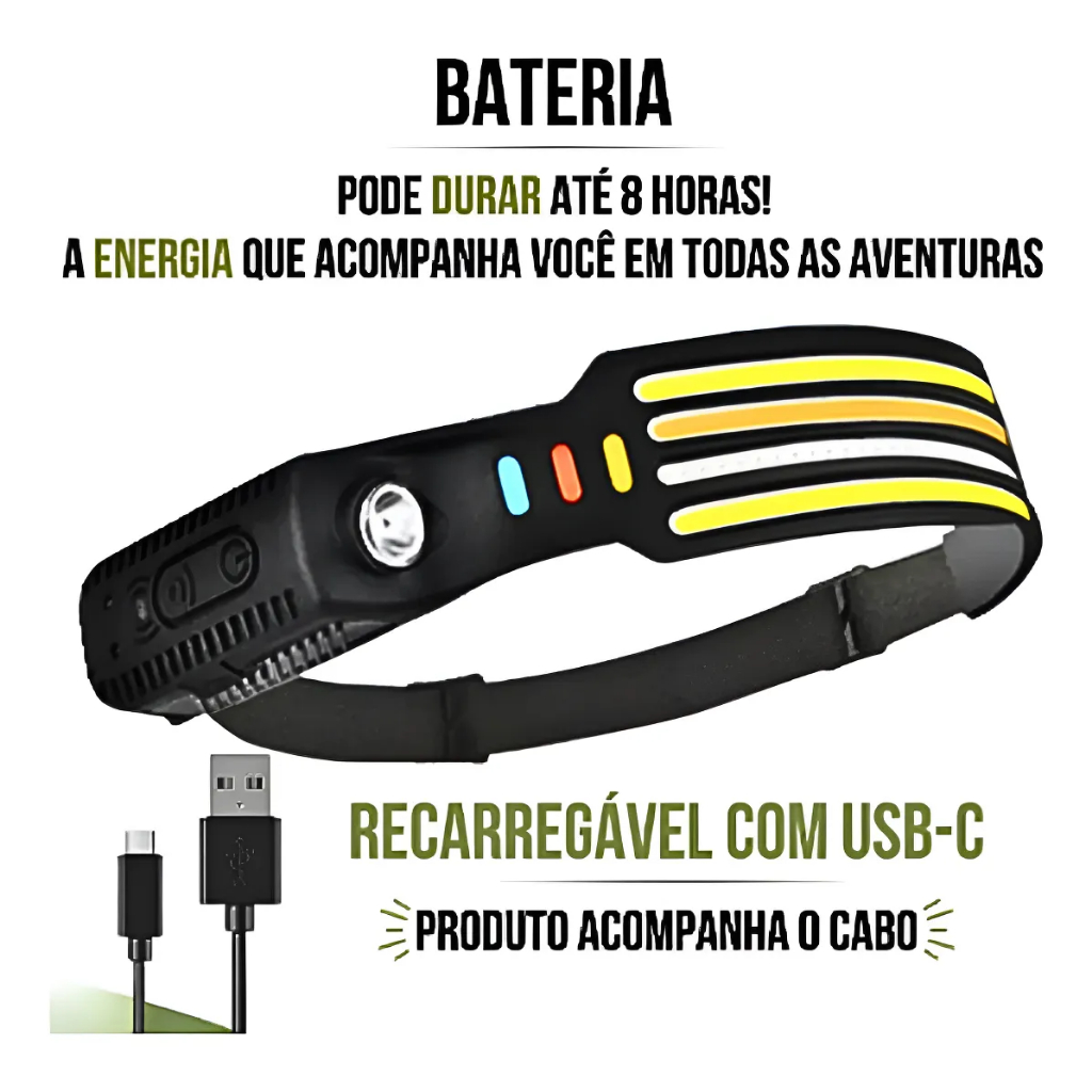 Lanterna De Cabeça Farol Super Led Recarregável Com Sensor
