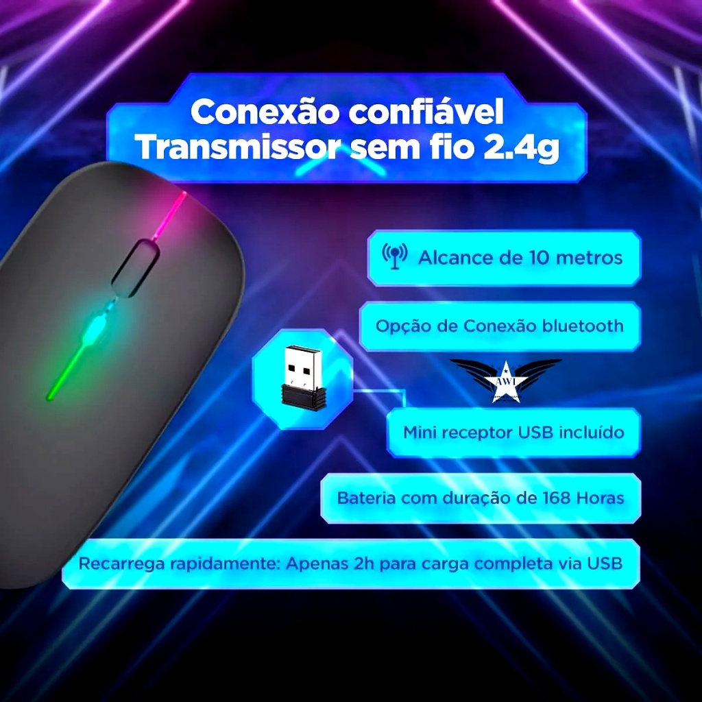 • Wireless Dupla Conectividade – Com interface USB 2.4Ghz e Bluetooth 5.0, você tem dois mouses em um, garantindo que o dispositivo funcione com praticamente qualquer computador ou laptop.